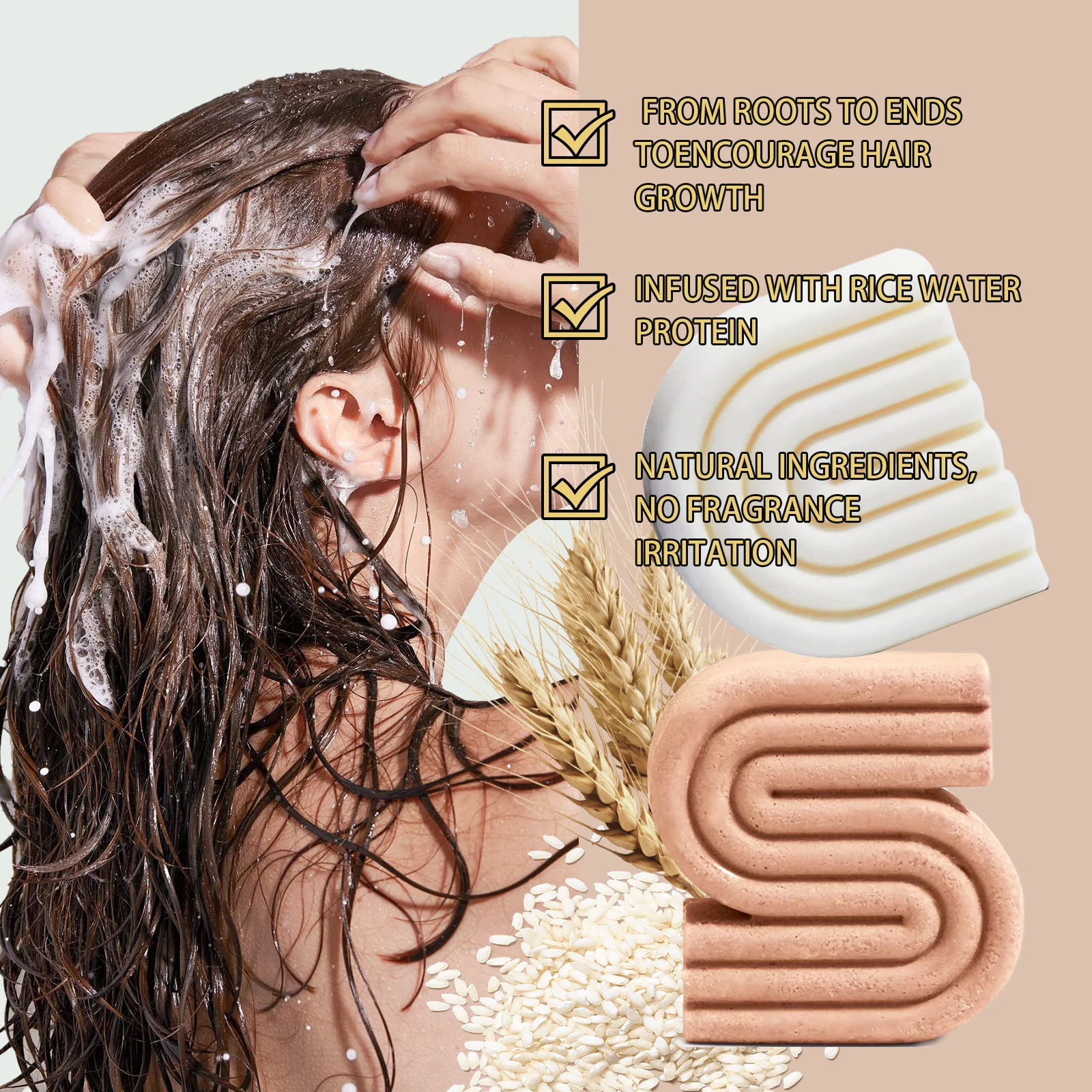 1-3PCS Rice Shampoo & Conditioner Bar Soild Soap for Hair Growth Strengthening Hair Clean Dandruff Nourish Moisturize Hair Care