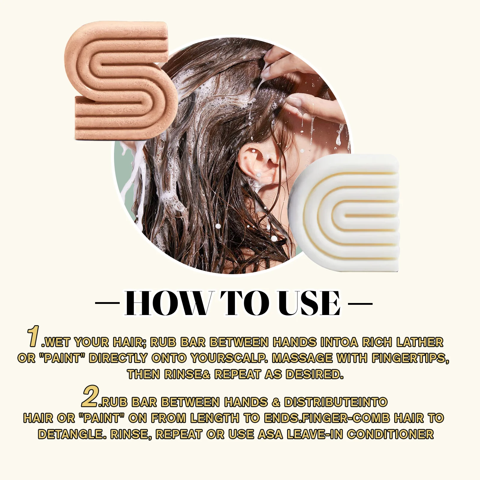 Wet hair, rub bar between hands or directly on scalp to lather.