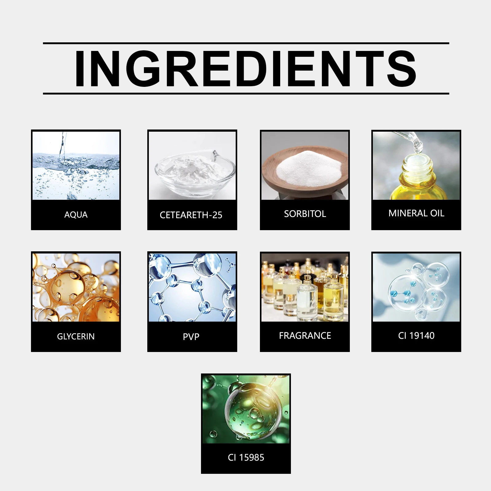 INGREDIENTS:AQUA、CETEARETH-25、SORBITOL、MINERAL OIL、GLYCERIN、PVP、FRAGRANCE、CI 19140、CI 15985