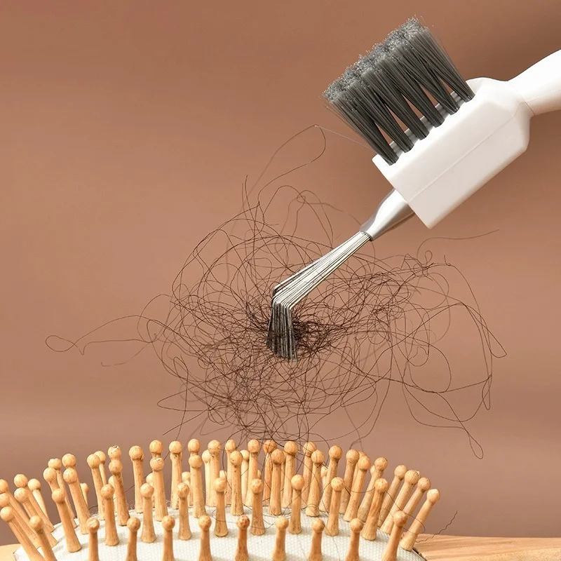 This brush cleaner features a dual-sided design, merging two essential cleaning tools into one. The stainless steel wire claws effortlessly remove tangled hair and pet dander, while the sturdy bristles tackle oil and dirt between brushes for a thorough clean