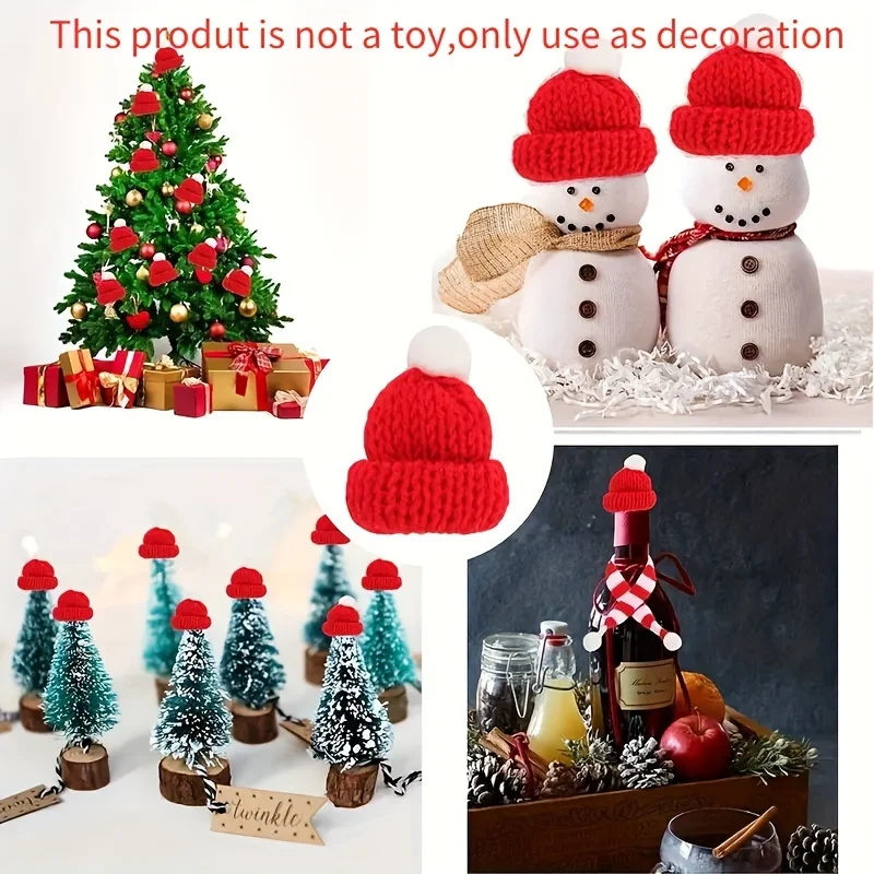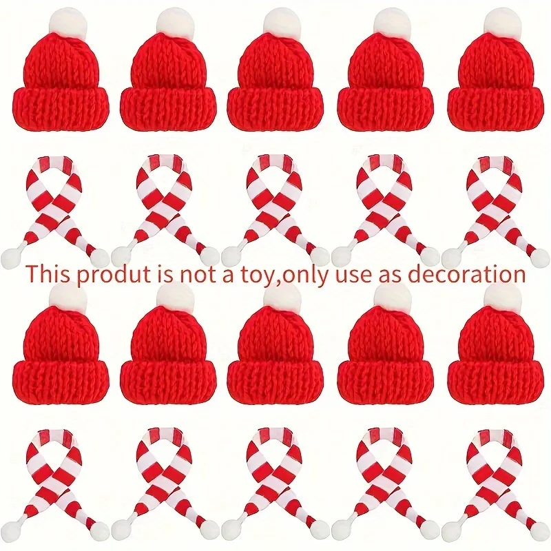 20pcs, Mini Christmas Hat And Scarf Set, Mini Christmas Knit Hat, Santa Hat Small For Christmas Wine Bottle Cover