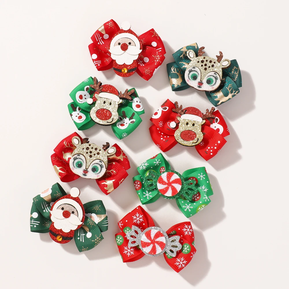 4pcs New Christmas Hair Bow Clips for Baby Girls DIY Glitter X'mas Santa Elk Bowknot Hairpin Cute Kid Headwear Hair Accessories