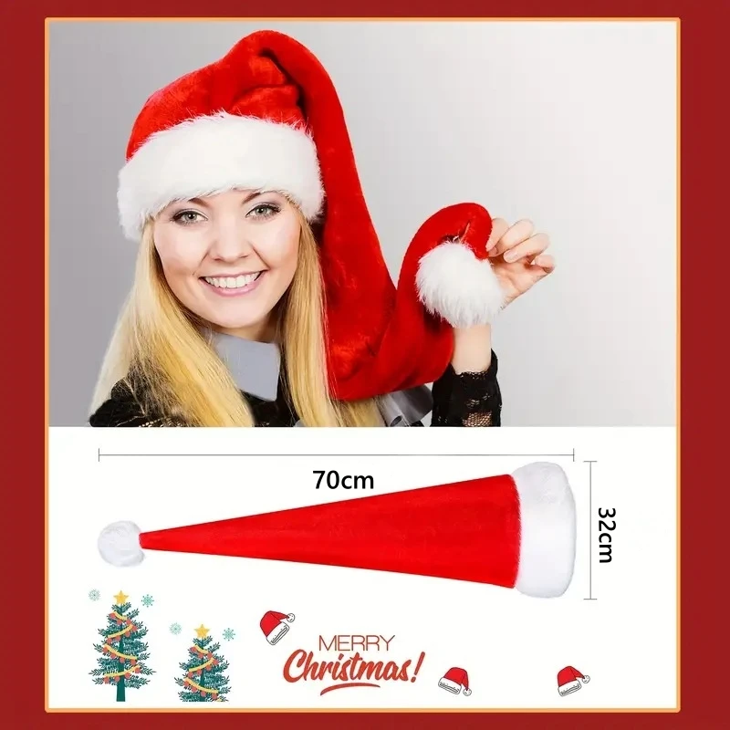 Long Plush Christmas Hat Velvet Cozy Long-Tai Plush Red Christmas Santa Hats New Year'S Holiday Party Supplies New Year 2025