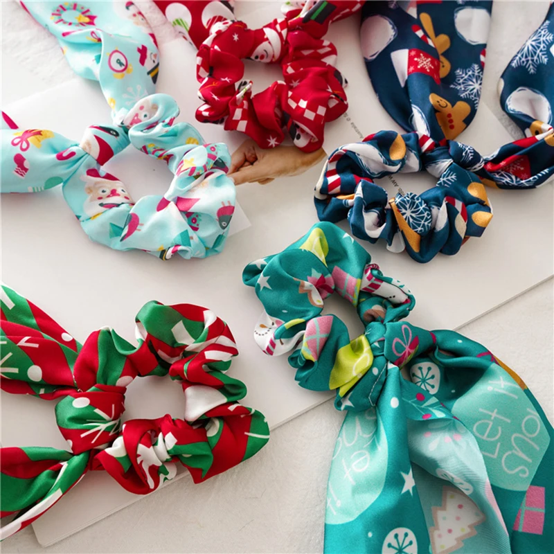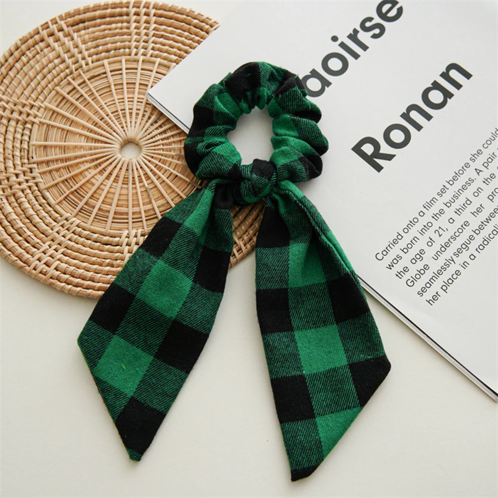 Ponytail Ribbon Hair Tie Santa Claus Elastic Hair Band Hair Accessories Christmas Style Plaid Scrunchies Simple Fashion DIY