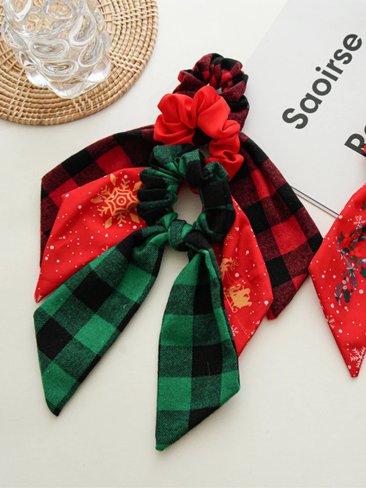 Ponytail Ribbon Hair Tie Santa Claus Elastic Hair Band Christmas Style Plaid Scrunchies Simple Fashion DIY Hair Accessories