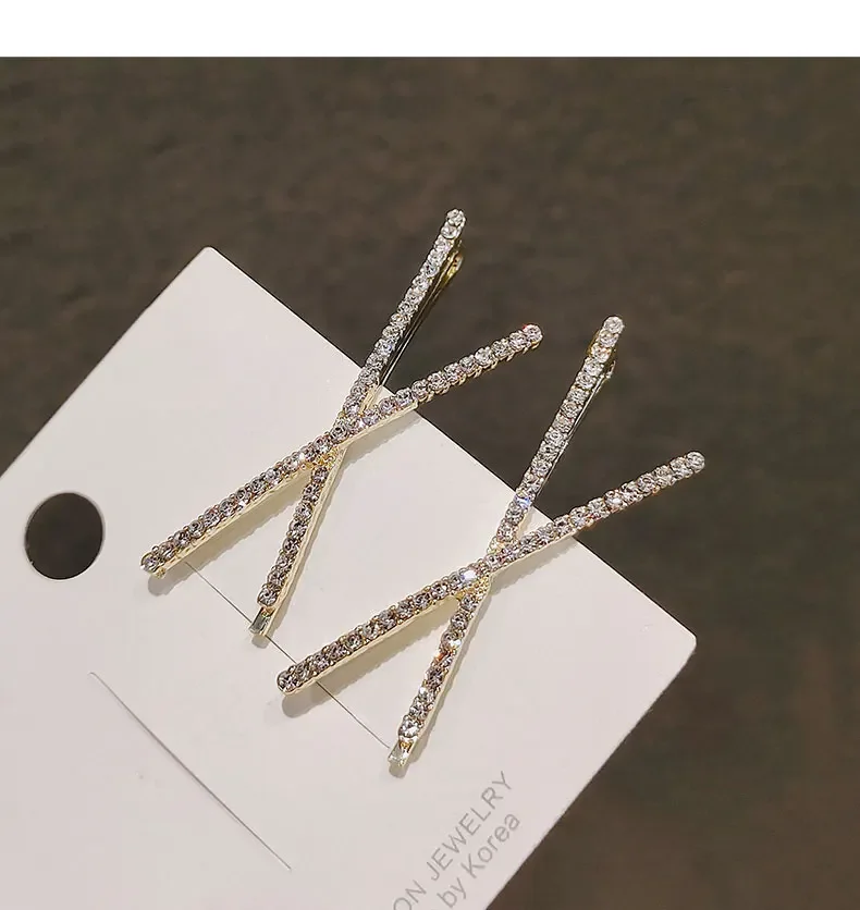 2pcs Cross Crystal Hairpins Rhinestone X Hair Clips Barrettes Simple Side Clip Bridal Headwear Girl Fashion Hair Accessories New