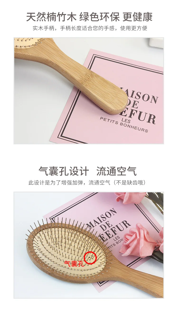 Wooden Steel Needle Air Cushion Comb Hair Brush Pin Hairbrush Scalp Massage Improve Hair Health Wood Paddle Detangling Comb