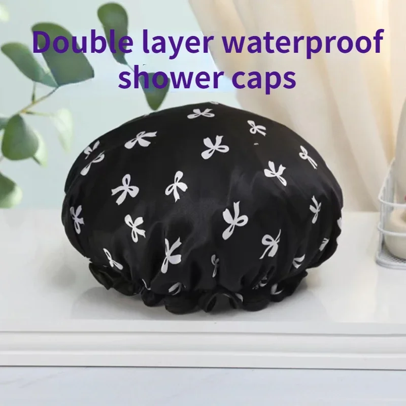 1pc Double Layer Shower Caps, Printed Bonnet, Waterproof Bath Caps Reusable Shower Caps Hair Hat For Women Ladies Spa Salon