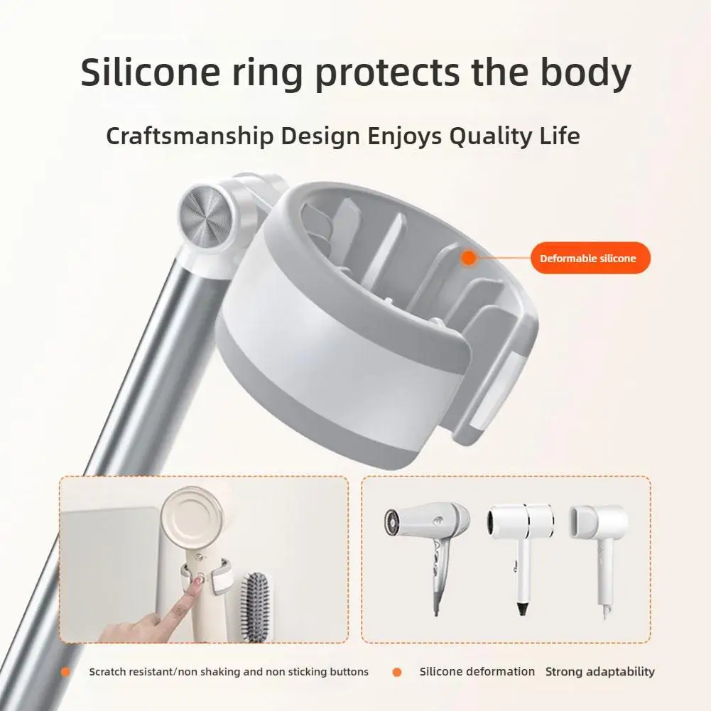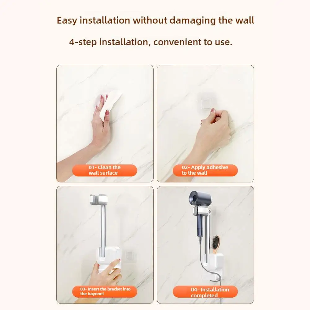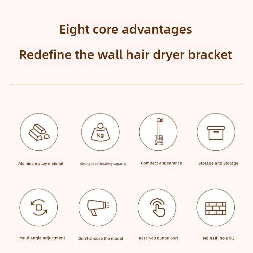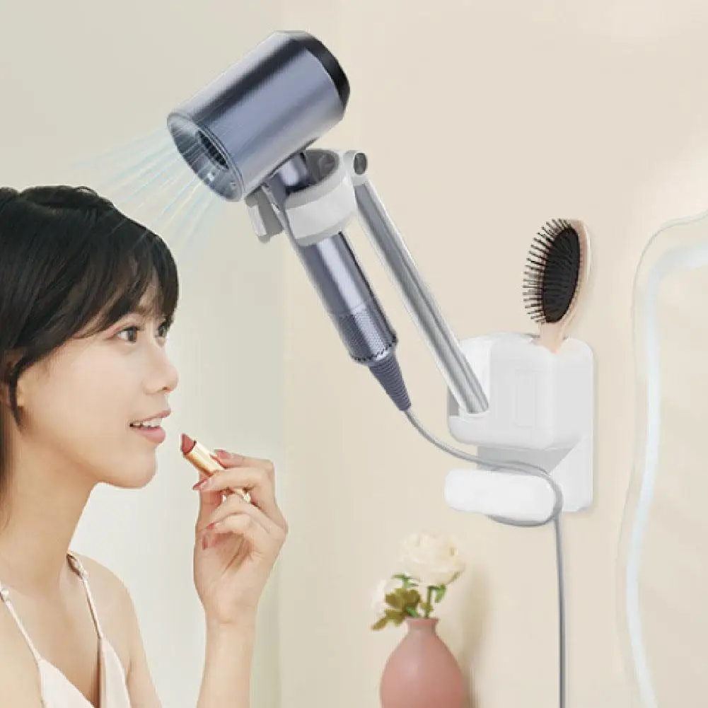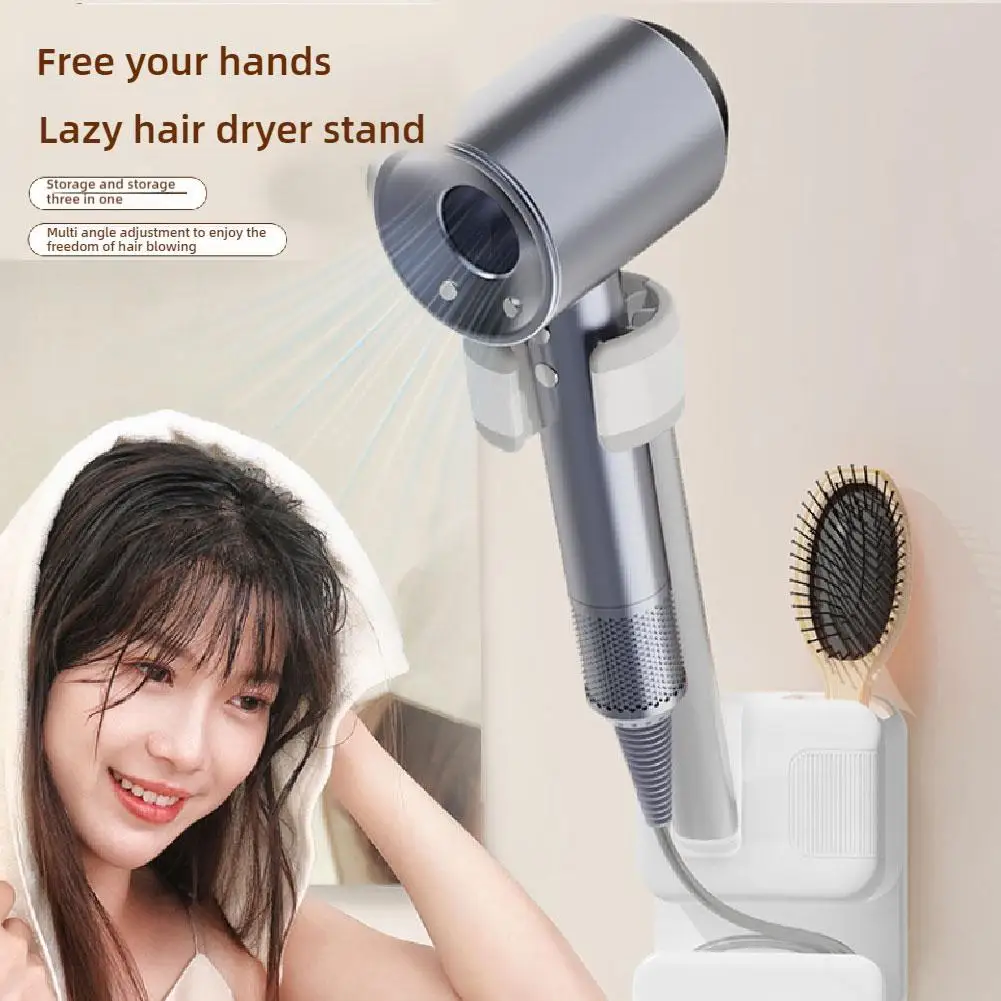 Angle Adjustable Hair Dryer Holder Non-Drilling Wall-Mounted Hair Dryer Stand For Bathroom Free-hand Lazy Storage Rack Shelf