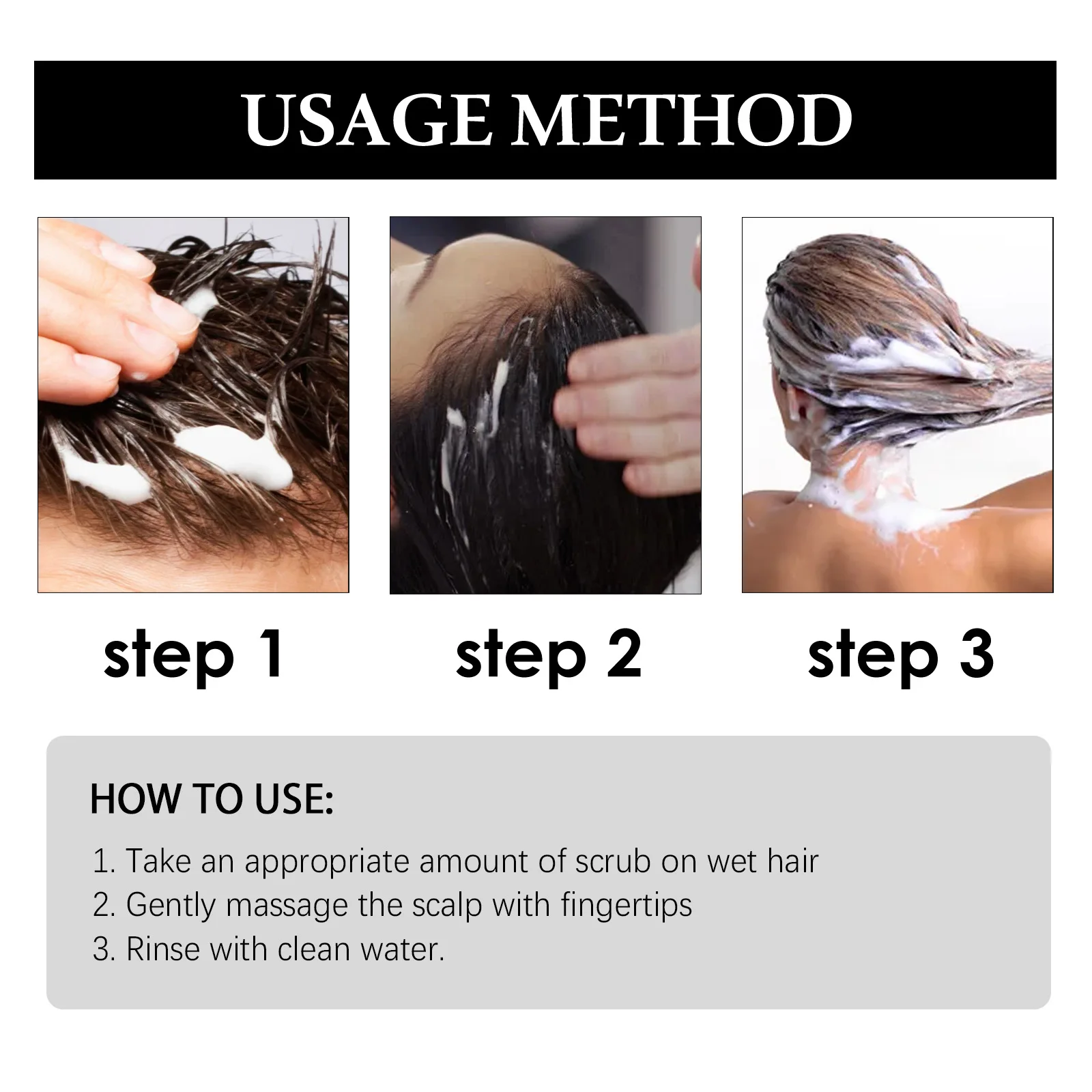 1.Contains sea salt, centella asiatica and ginger extract ingredients, gentle and effective, soothe the scalp.