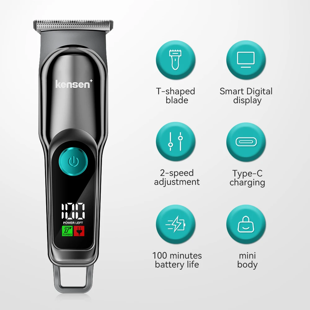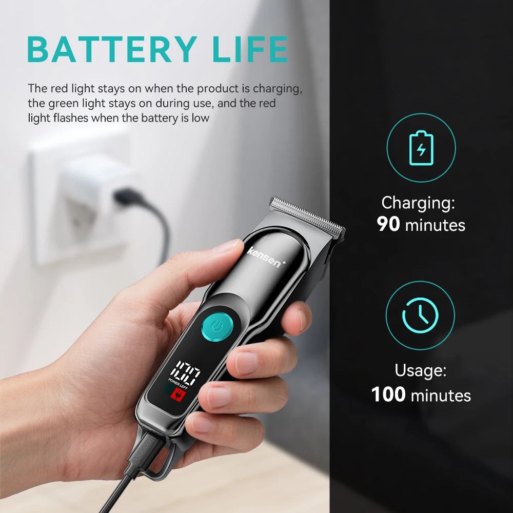 Kensen S2 Electric Hair Clipper for Men LED Display Beard Clipper Rechargeable Hair Shaver Hair Trimmer Kit Hair Cutting Machine