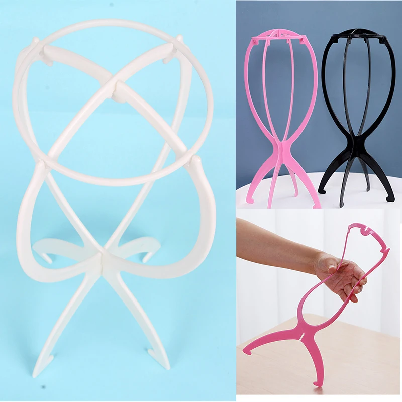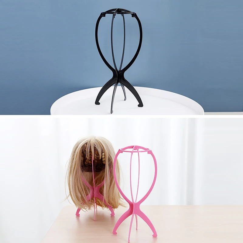 1Pcs Wig Stand Plastic Hat Display Wig Head Holders 17x36Cm Mannequin Stand Portable Folding Wig Stand Pink Hair Display Tools