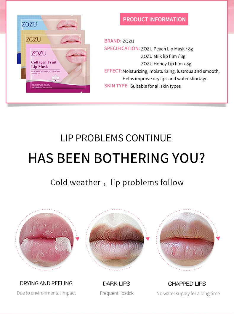 10pcs ZOZU Crystal Collagen Lip Mask Plump Lips Moisturizing Anti Wrinkles Nourishing Lip Patches Plumper Beauty Skin Care