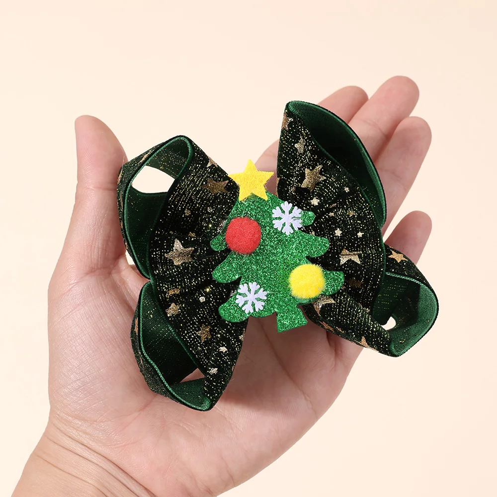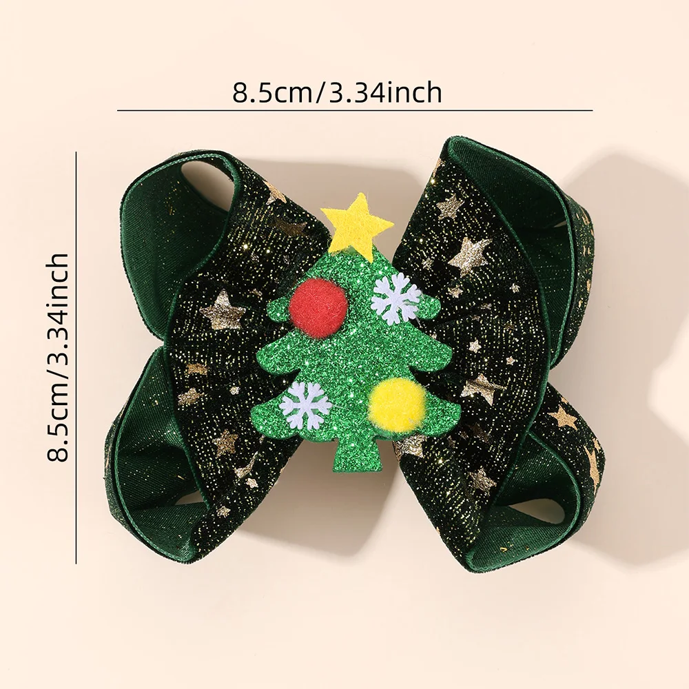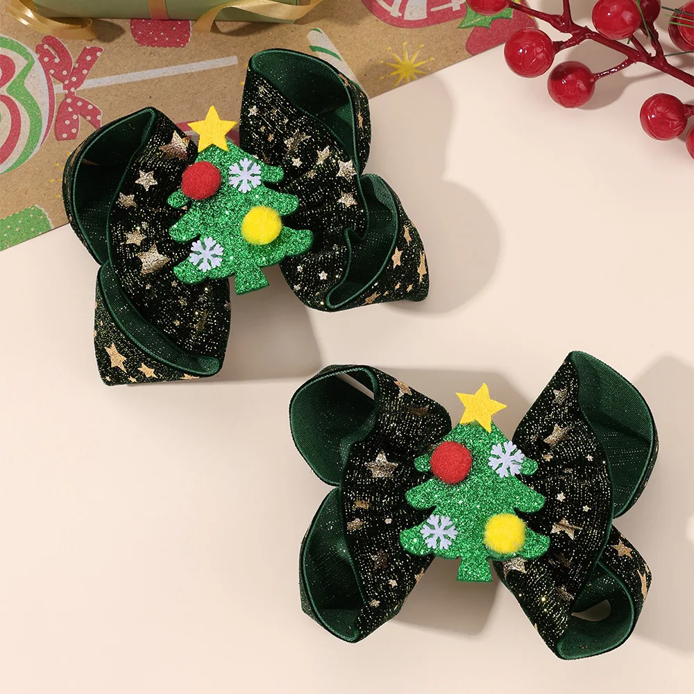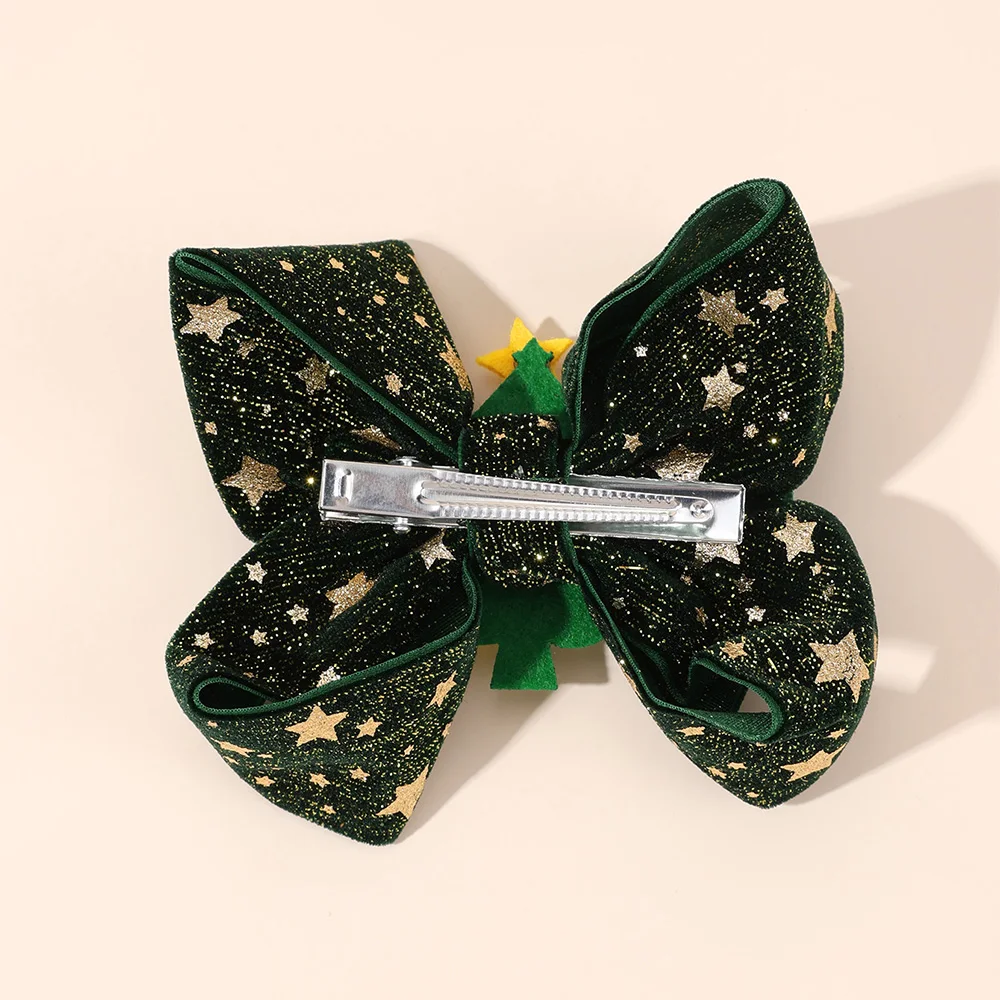 2Pcs Christmas Star Bow Hair Clips Glitter Antler Bownot Hairpins Vintage Velvet Barrette For Girls Xmas Headwear Accessories