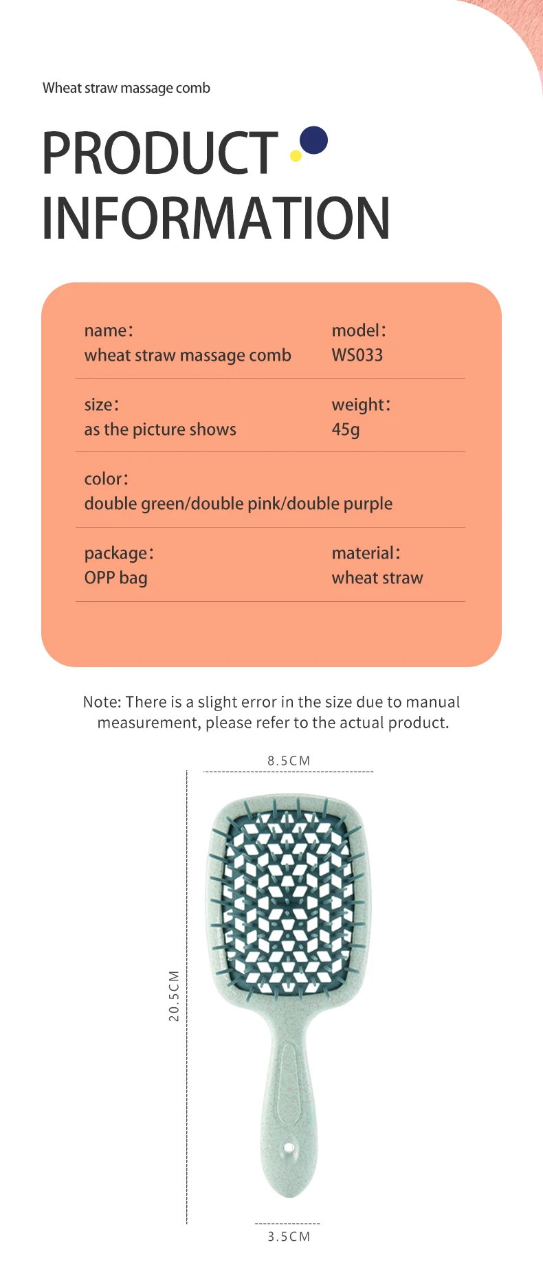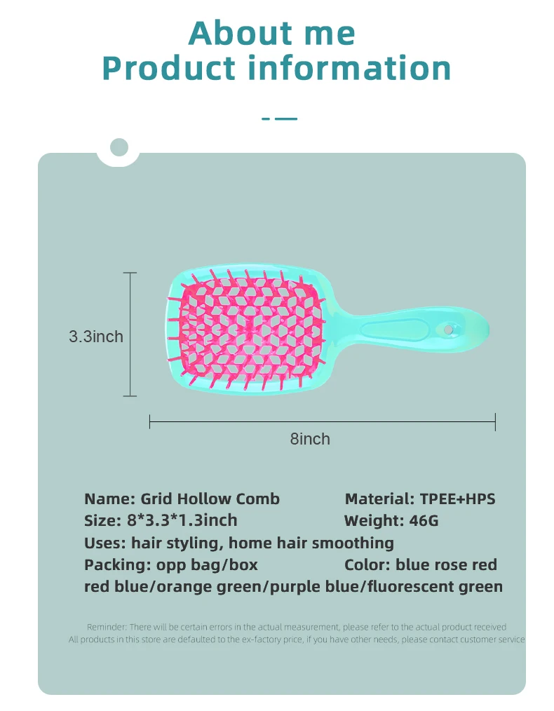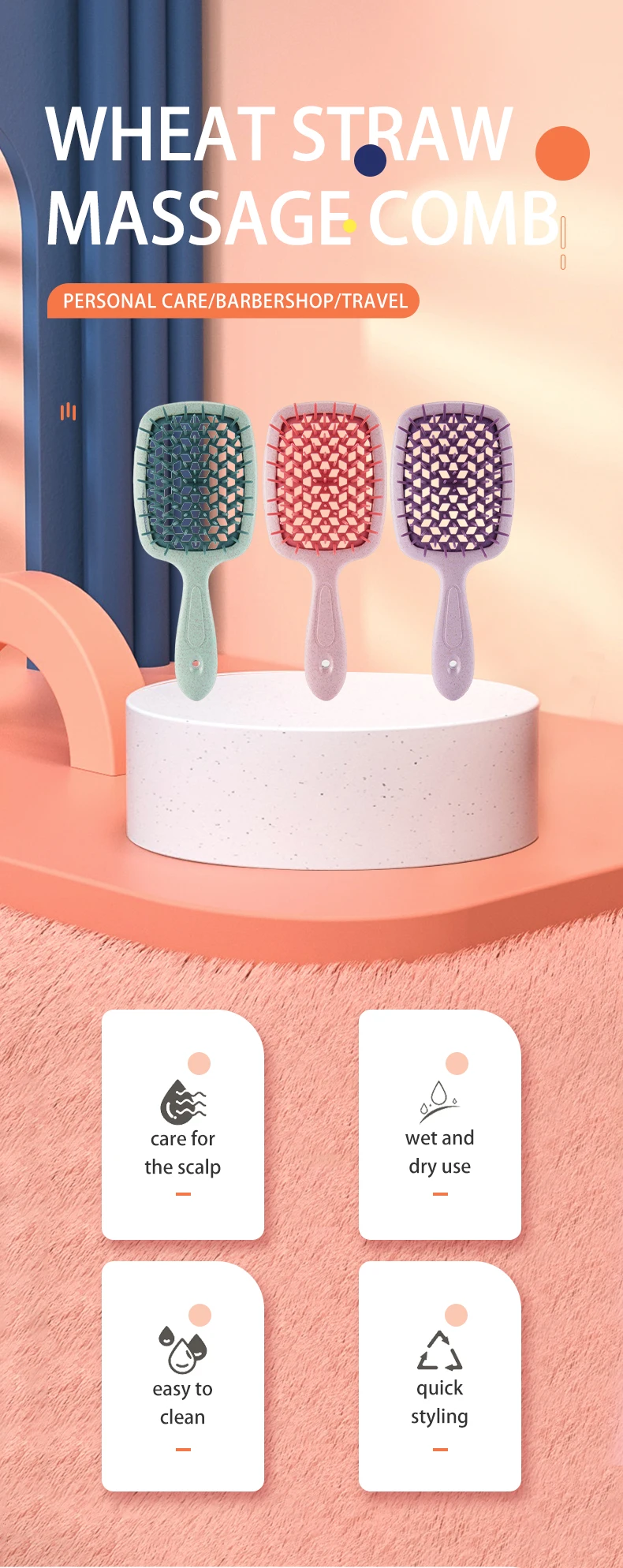 2pcs Professional Comb Detangling Hair Brush Scalp Massage Anti-static Comb Hollow Out Hairbrush for Wet Dry Barber Hair Styling