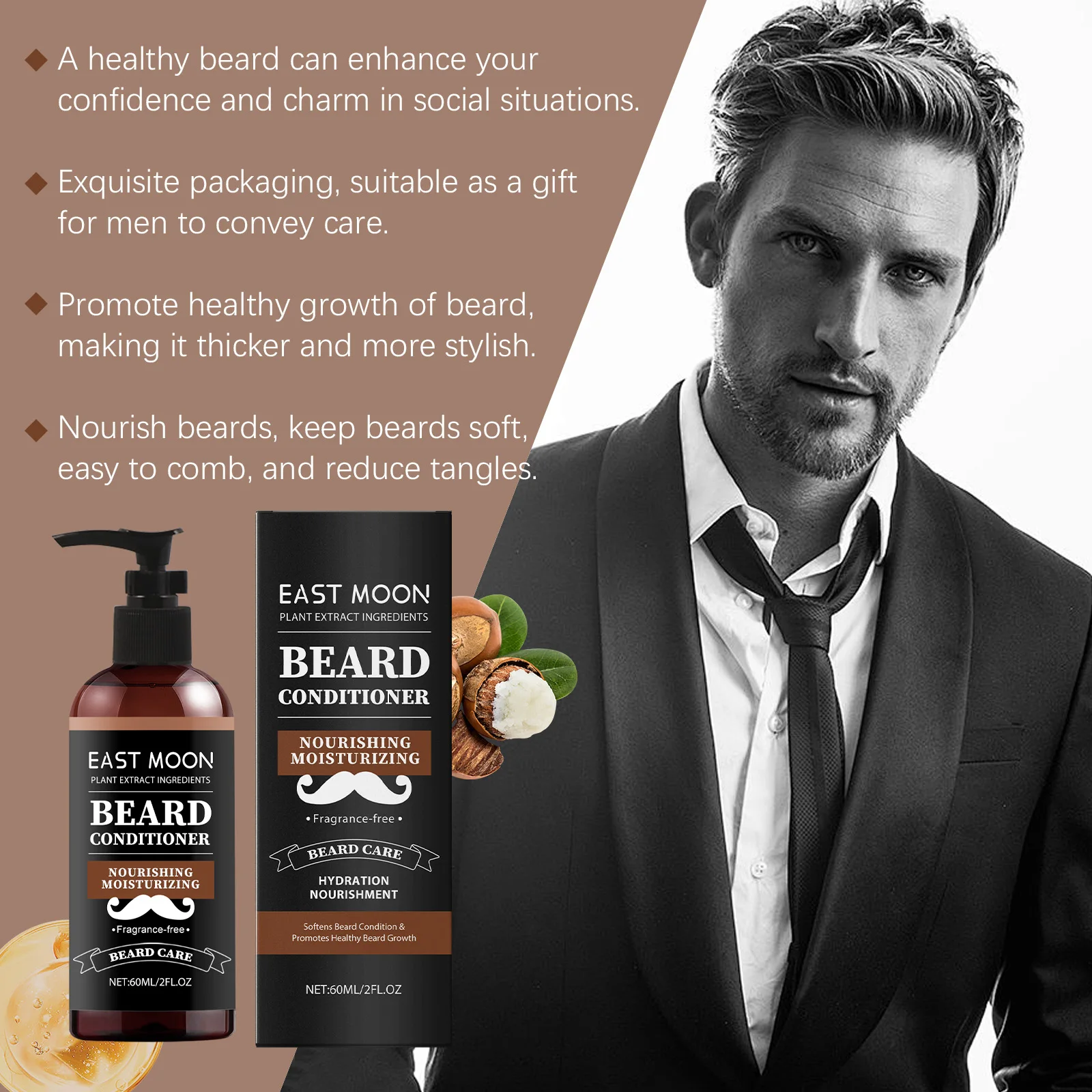60ml Men Beard Nourishing Conditioner Oil Control Deep Moisturize Restore Soften Improve Hair Loss Beard Growth Conditioner