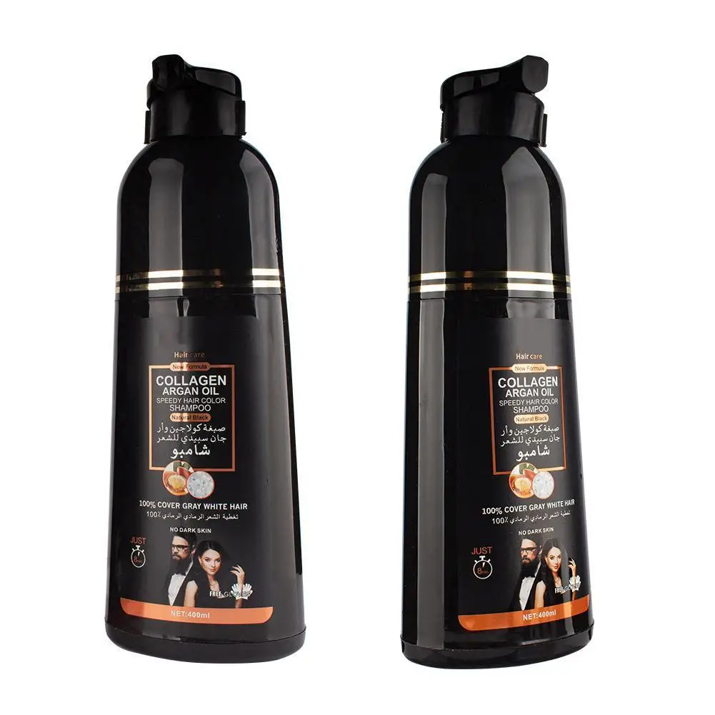 Collagen Argan Oil Black Hair Dye Shampoo 400ml 3-in-1 Nourishing Formula for Gray Hair, Long-Lasting Color for Men Women