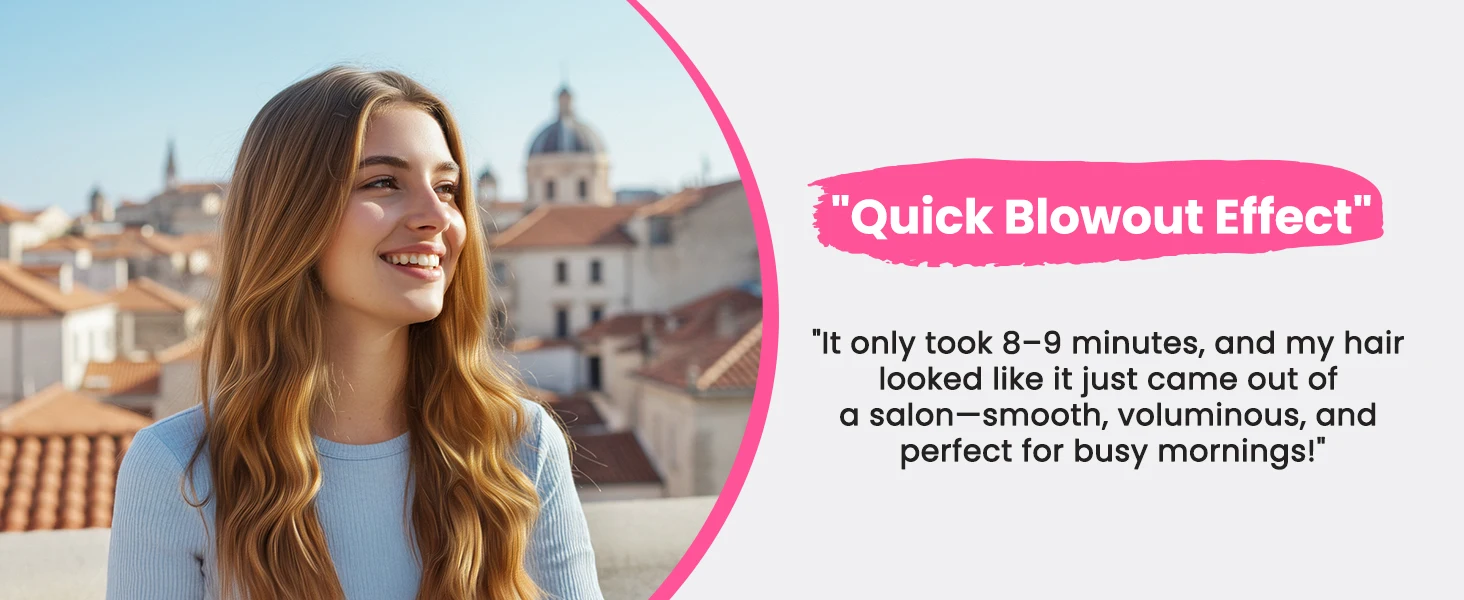 Professional travel hot round brush with universal 110-240V voltage—no converter needed. Lightweight, 360° swivel cord, and ergonomic handle for effortless styling. Create voluminous waves and lifted roots with ease. Auto shut-off after 30 minutes. A present that helps them shine. Watch their confidence bloom with every flawless style. It’s more than a gift—it’s an invitation to turn heads