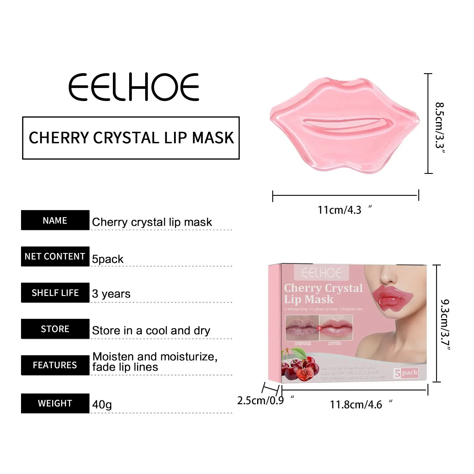 EELHOE Cherry Nourishing Lip Mask Fade Lip Lines Improve Dry Repair Cracks Smoothing Lip Patches Moisturizing Skincare Mask 5pcs