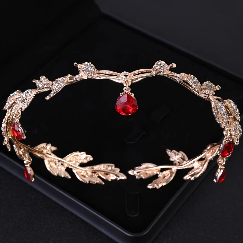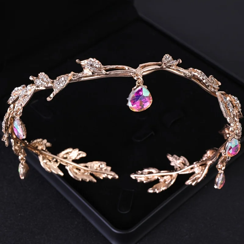 Fashionable and Luxurious Elf Crown Bridal Crystal Rhinestone Waterdrop Leaf Hair Accessories Romantic Head Accessories forWomen
