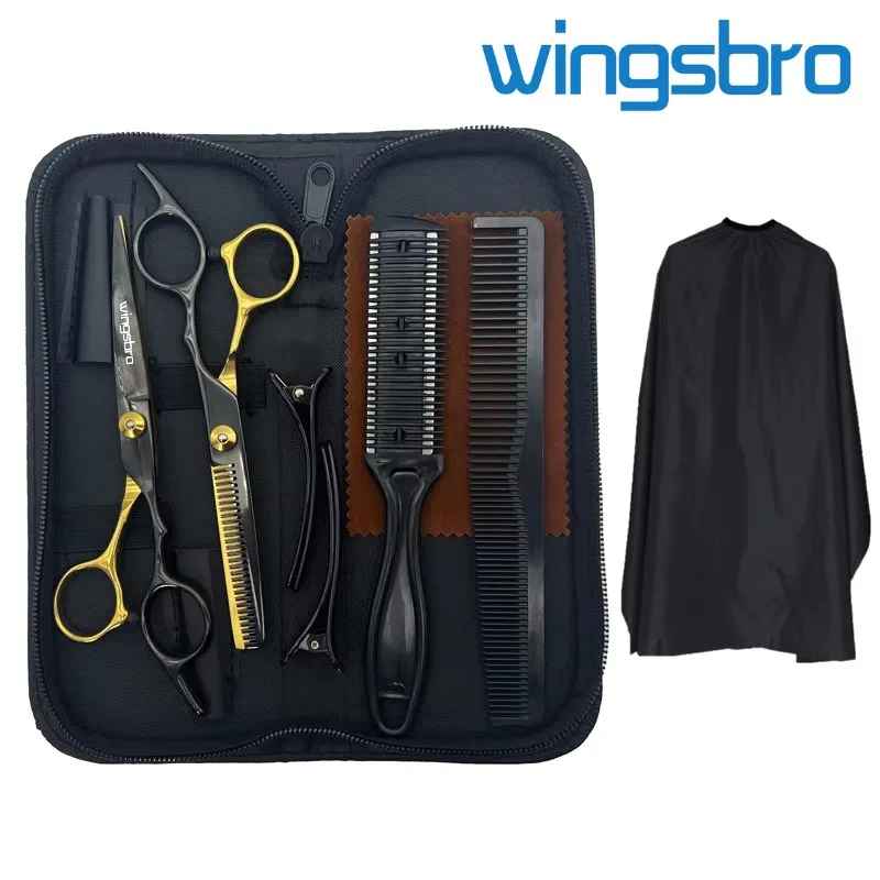 Hair Cutting Scissors Set, Professional Haircut Scissors Kit With Cutting Scissors, Thinning Scissors, Comb, Cape, Clips,Hairdre