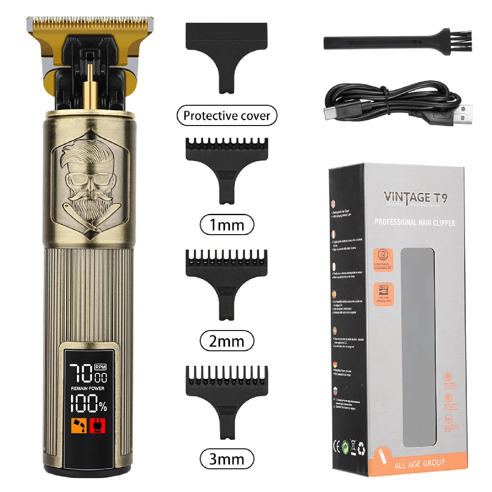 HIENA T9 Hair Clipper set for men LCD Power Display barber Electric Hair Trimmer vintage carving Beard Shaving haircut machine