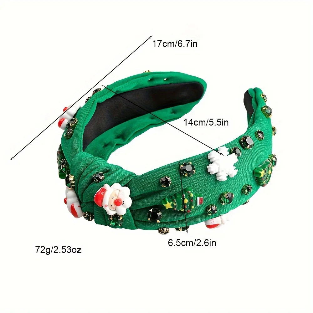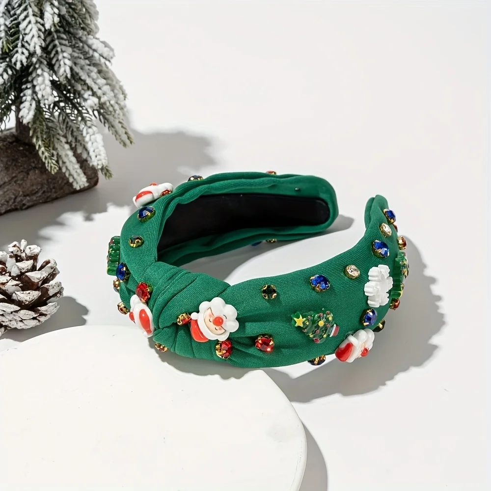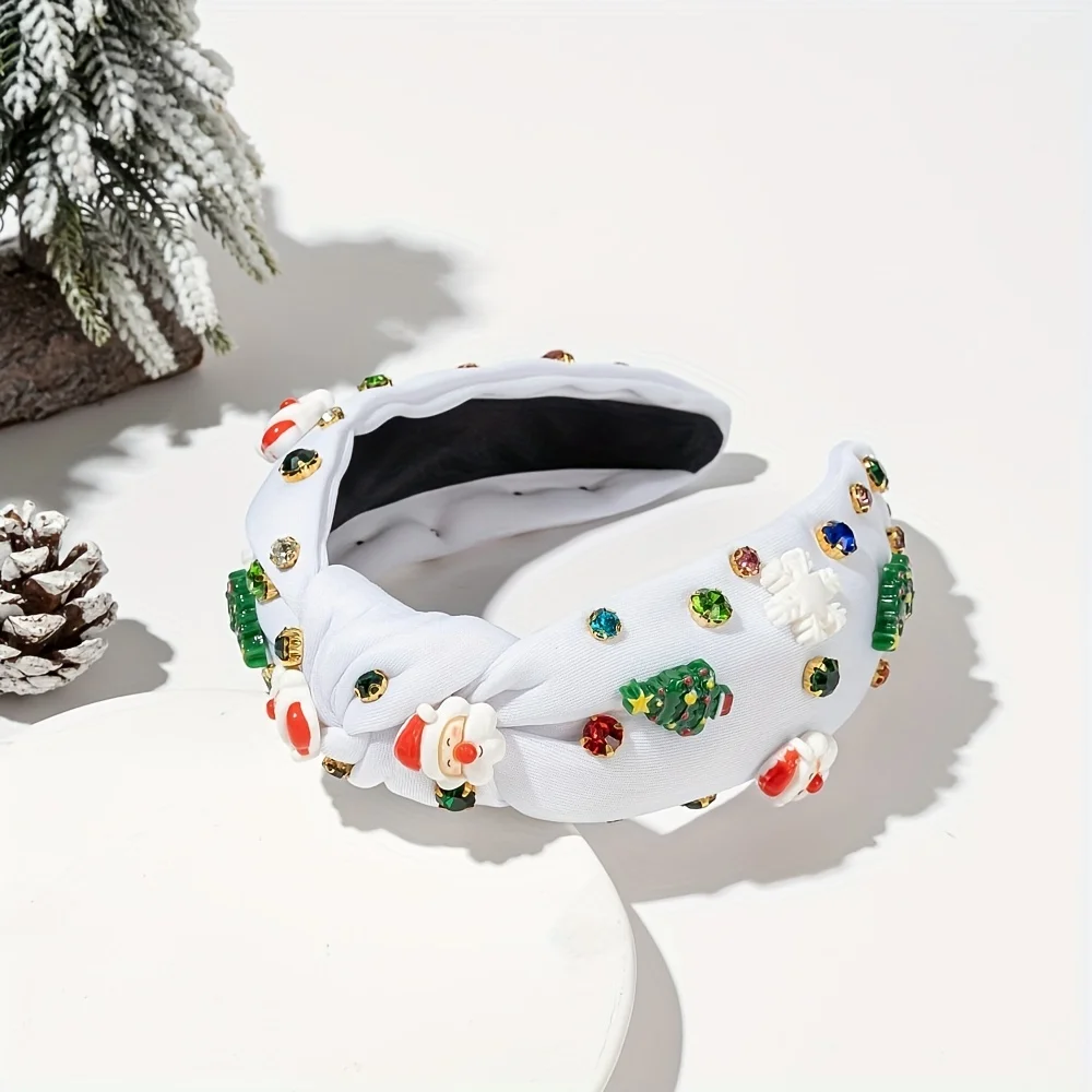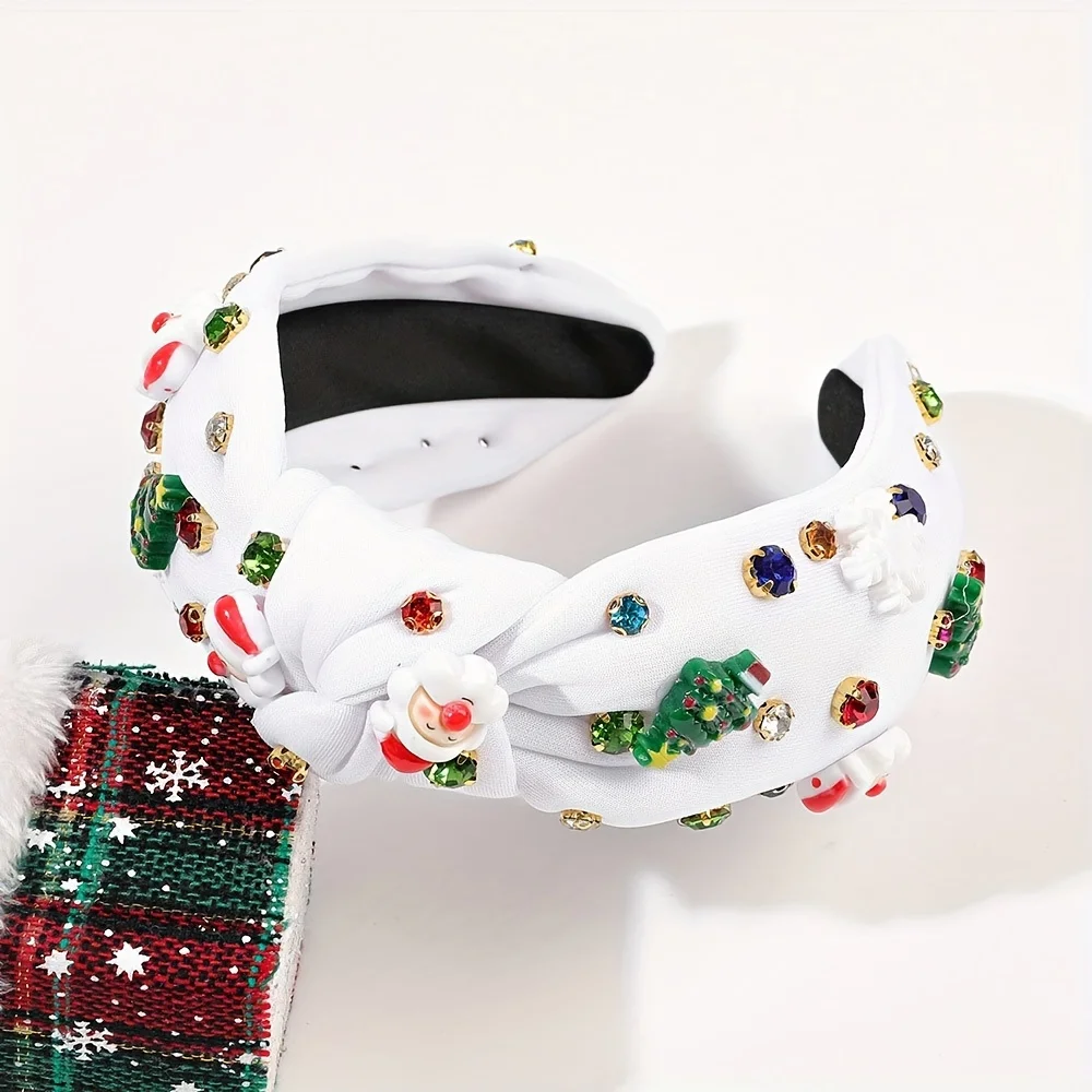 Holiday Christmas Headband - Wide ligature design, sparkling rhinestones, Santa Claus and snowflake pattern