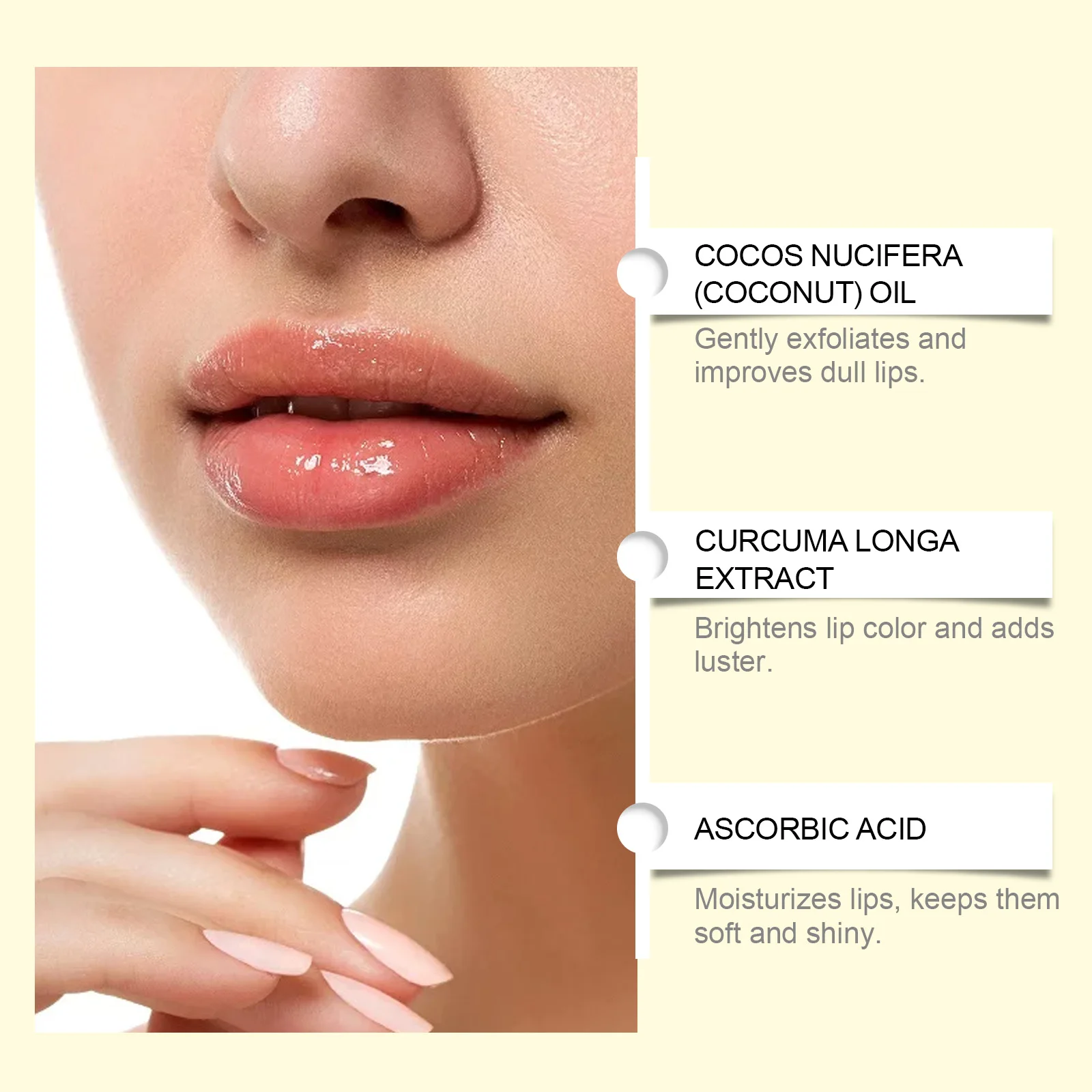 🌟 Natural Brightening Duo! Infused with Turmeric & Coconut Oil, this scrub gently buffs away flaky skin, revealing brighter and more radiant lips naturally!