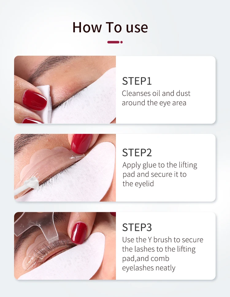 Step 3 :Use the Y brush to secure the lashes to the lifting pad,and comb eyelashes neatly