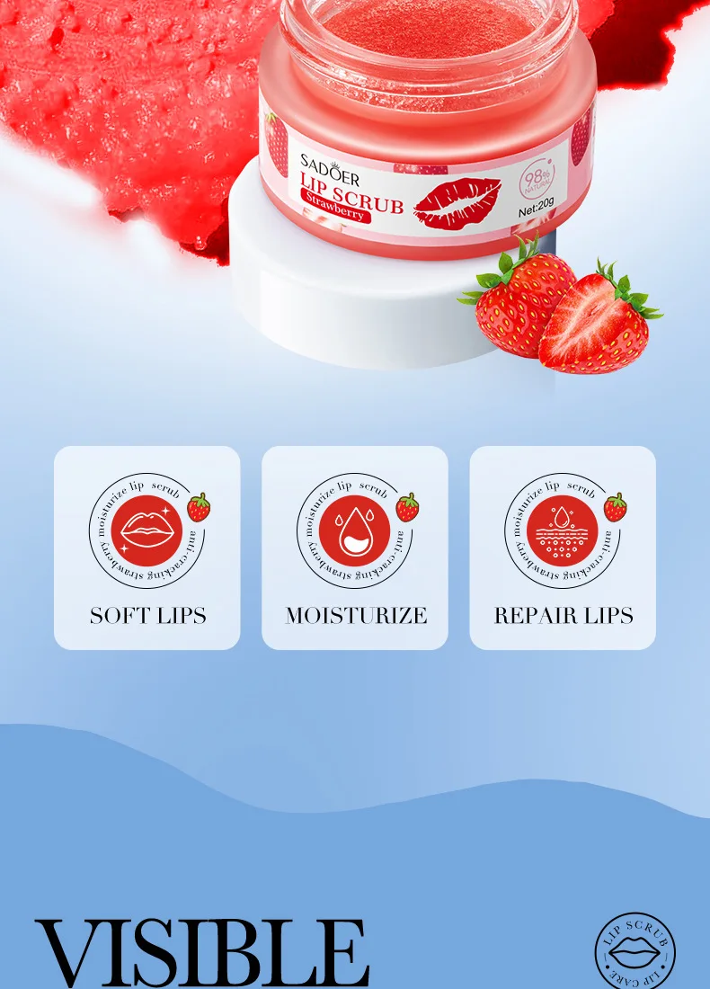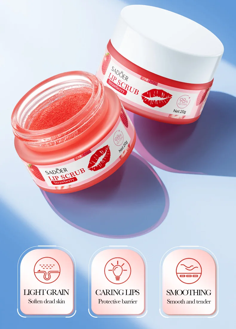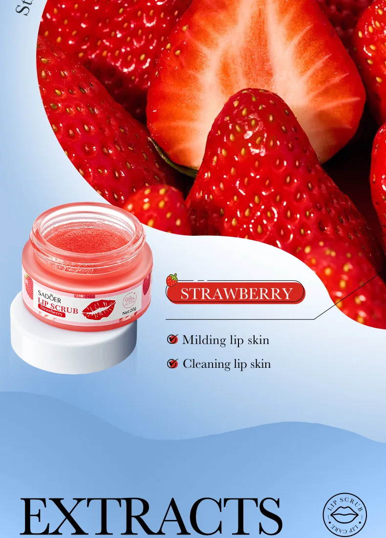 SADOER Fruit Series Strawberry Lip Scrub Dead Skin Moisturizes Brightening Lip Color, Makes Lips Pink