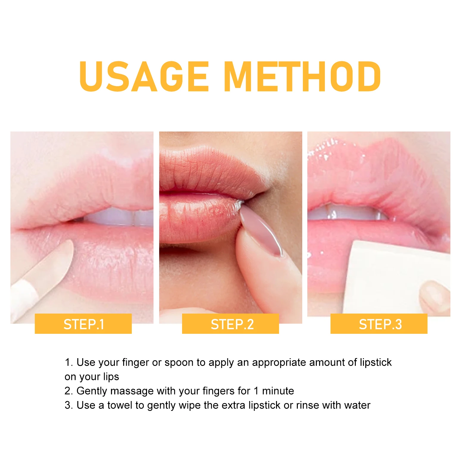 3. Use a towel to gently wipe the extra lipstick or rinse with water