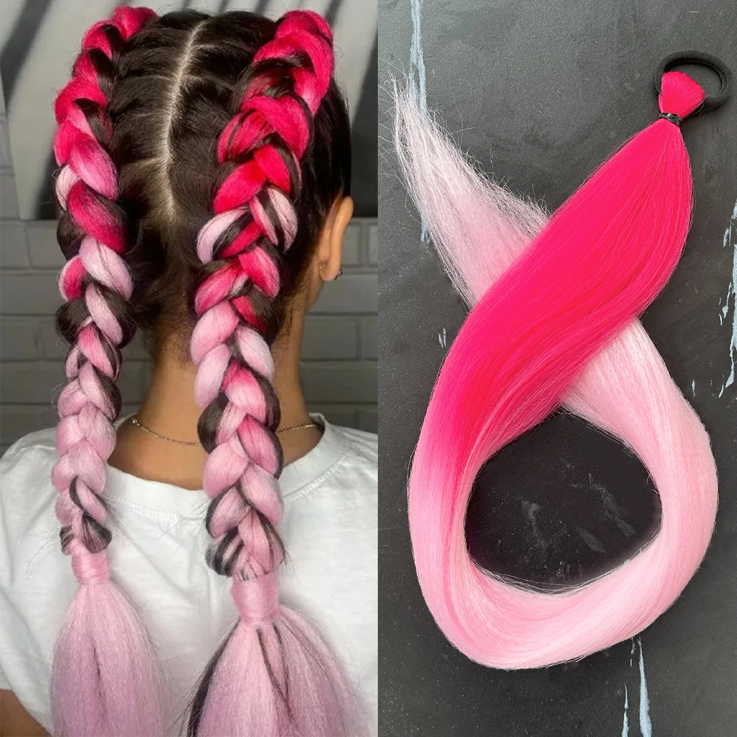 Synthetic 28Inch Long Straight Ponytail Purple DIY Braided Ponytail With Rubber Band Halloween Hair Accessories For Woman