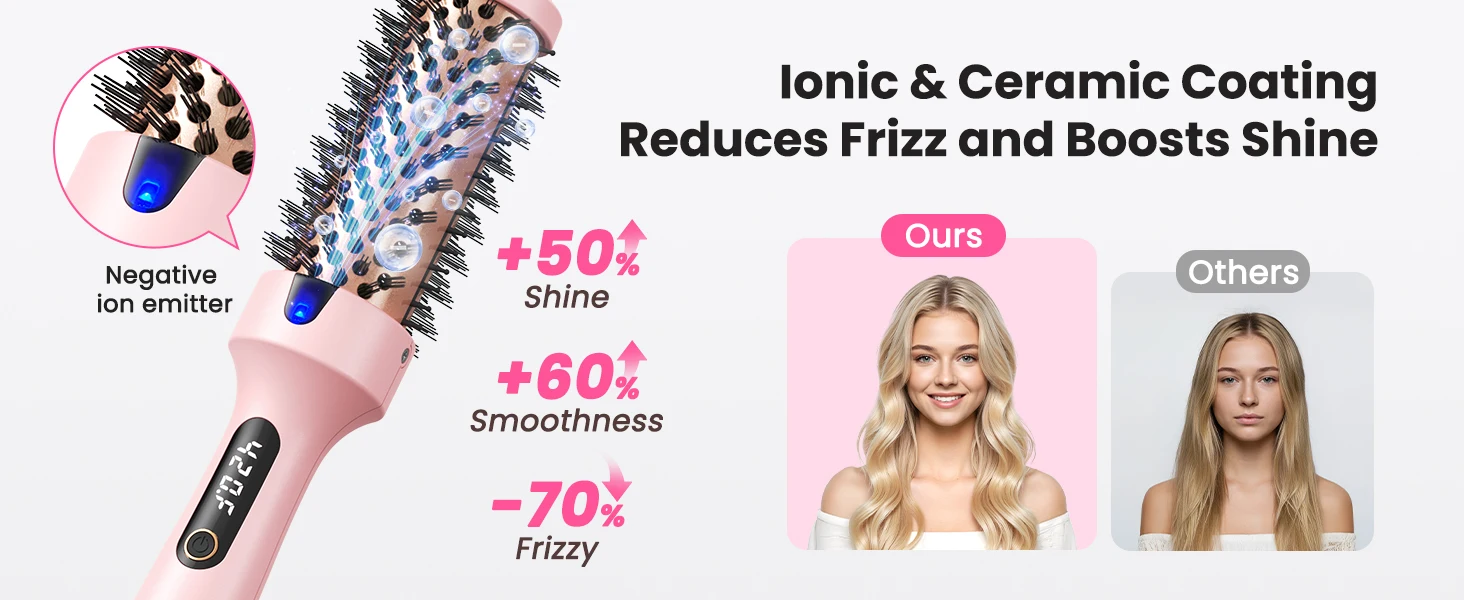 Ionic Thermal Brush: Enhance your hair styling experience with our negative ion thermal brush. Negative ions work wonders by sealing the hair cuticle, reducing frizz, and enhancing shine. Say goodbye to dull, lifeless hair and hello to smooth, lustrous locks with the transformative power of negative ions.