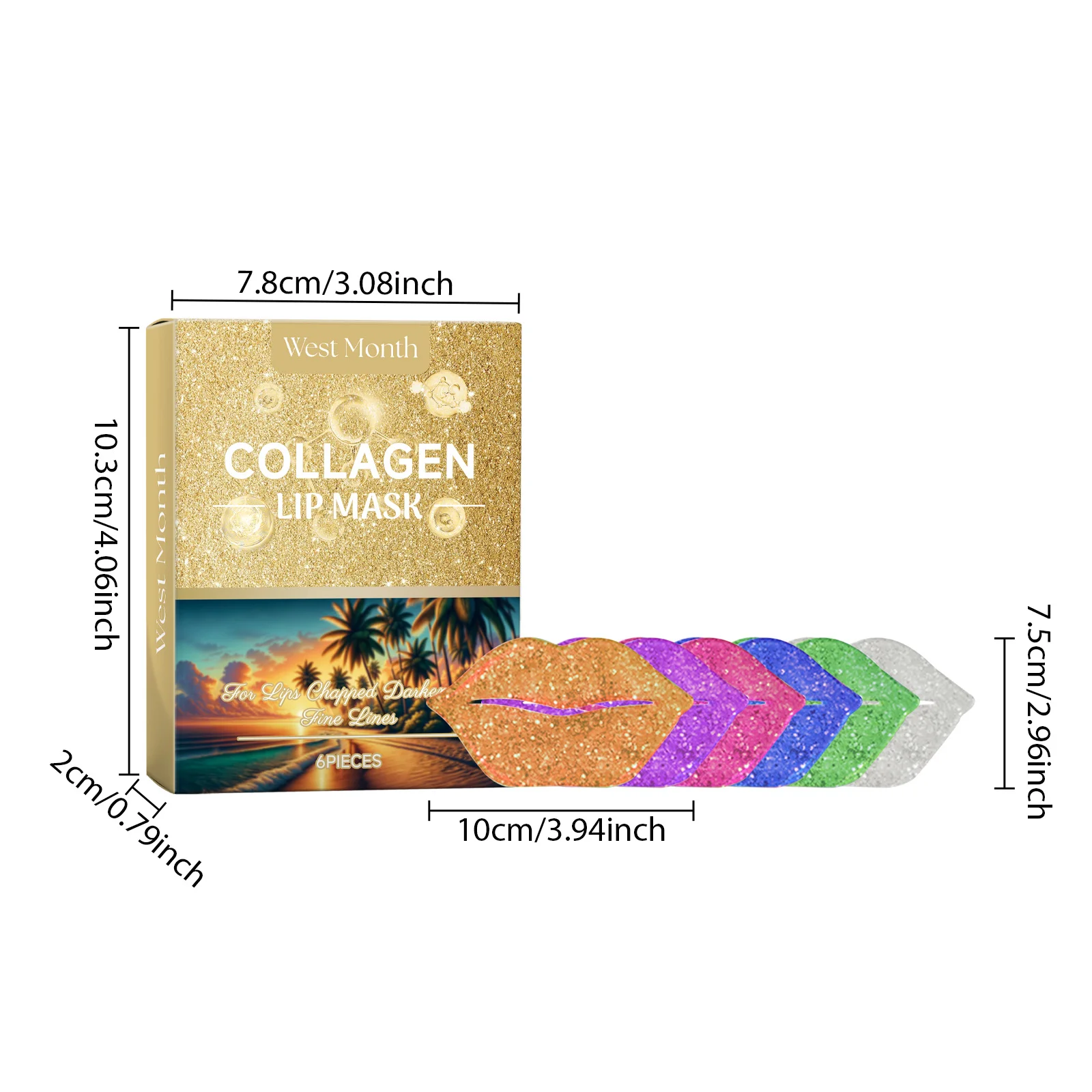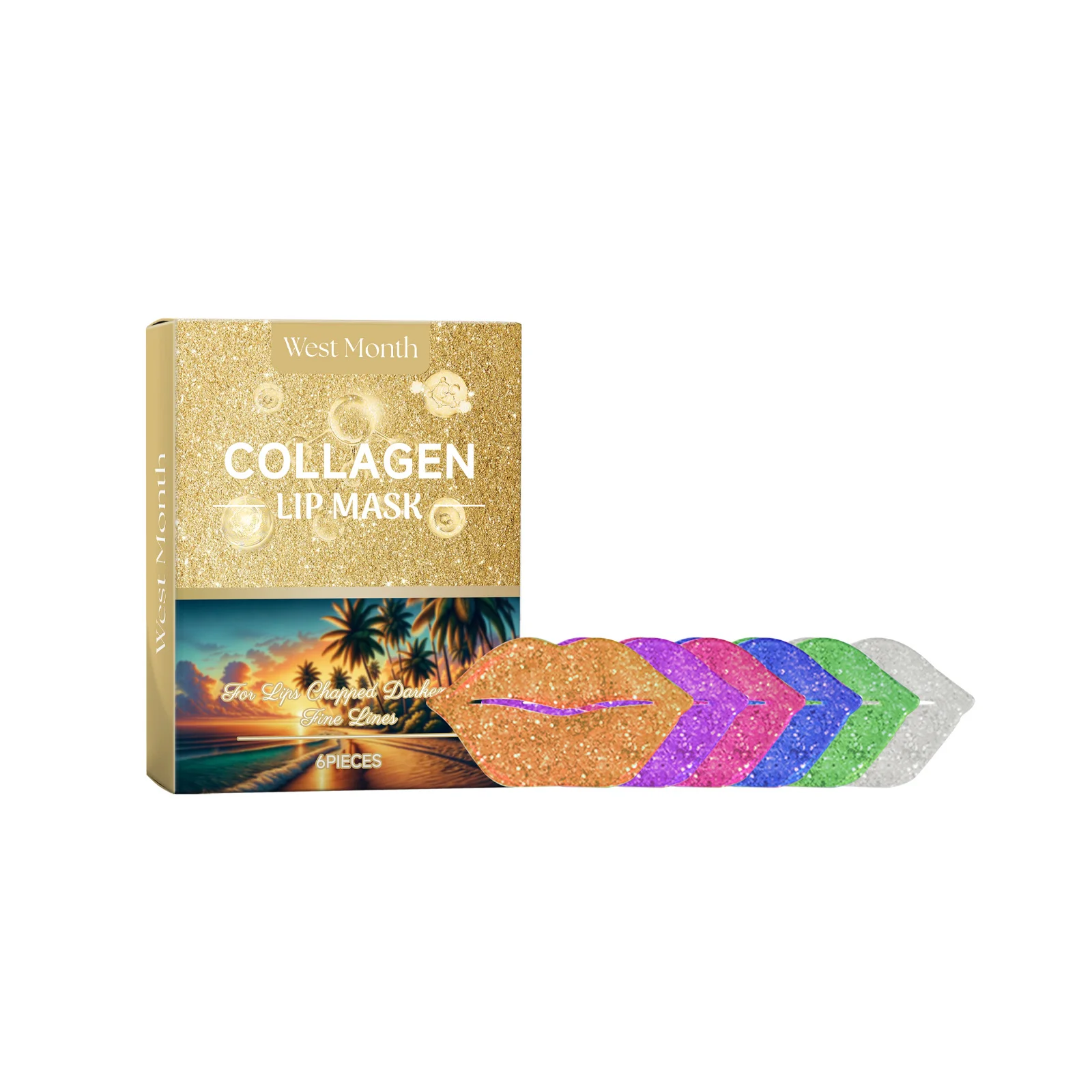 West&Month 6pcs Collagen Lip Mask Hydrating Firming Fade Lip Lines Nourishing Night Sleep Smooth Anti Dry Care Lips Plumper Mask