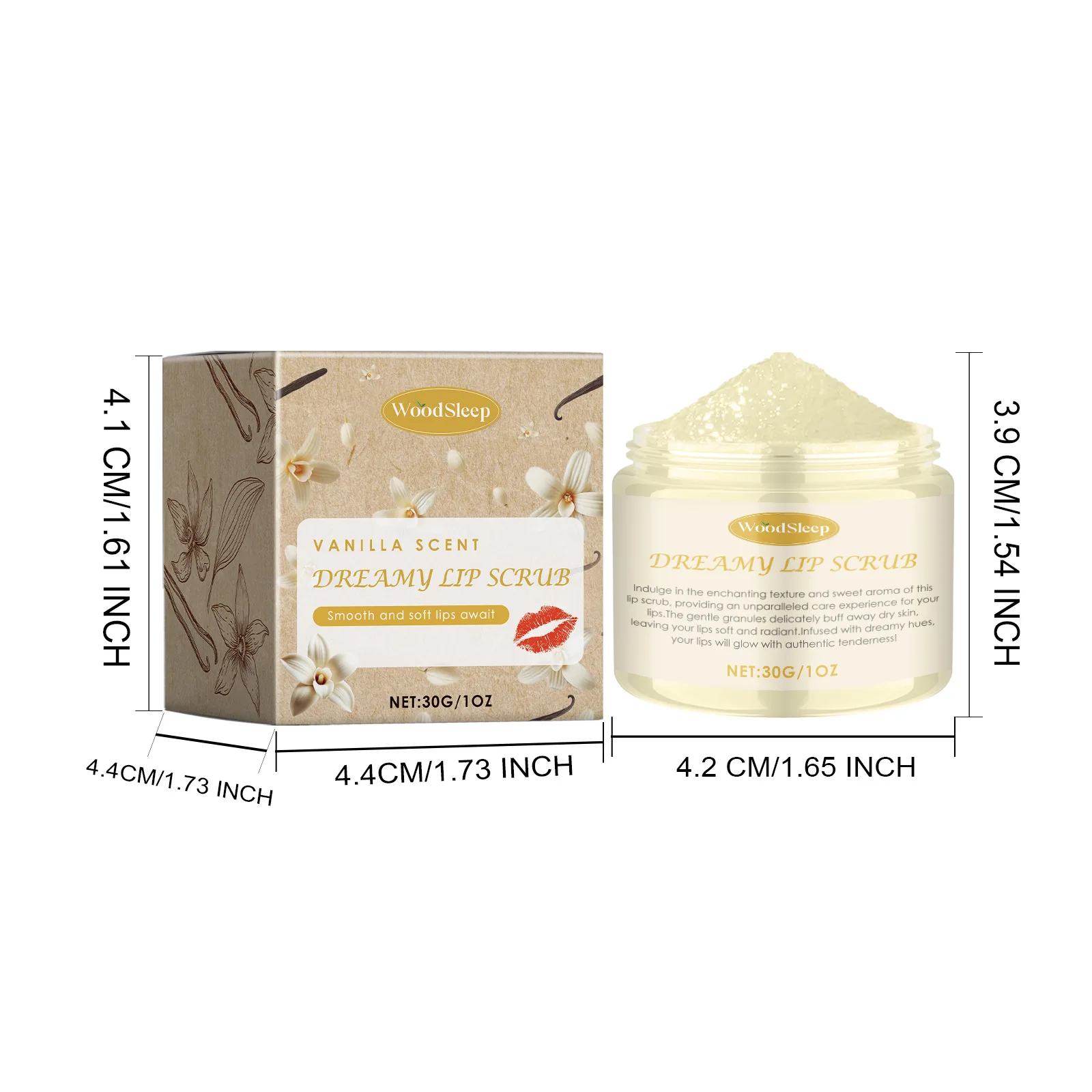 WOODSLEEP Vanilla Lip Care Cream Relieve Dryness Sooth Exfoliate Improve Roughness Repair Cleft Lip Brighten Skin Tone Lip Scrub 30g